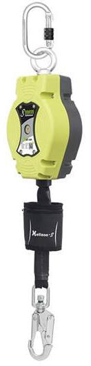 Dispozitiv de protecție retractabil, lățimea curelei 25 mm, lungimea curelei 6 m, carabinier, indicator de cădere, greutate 2,56 kg, certificat pentru utilizare orizontală, testat pentru cădere pe muchii ascuțite, APLICAȚII:echipament pentru schele (1), echipament pentru acoperișuri înclinate (5), echipament pentru spații închise (6), material: polimer, poliester, oțel, standard: EN 360, culoare: gri