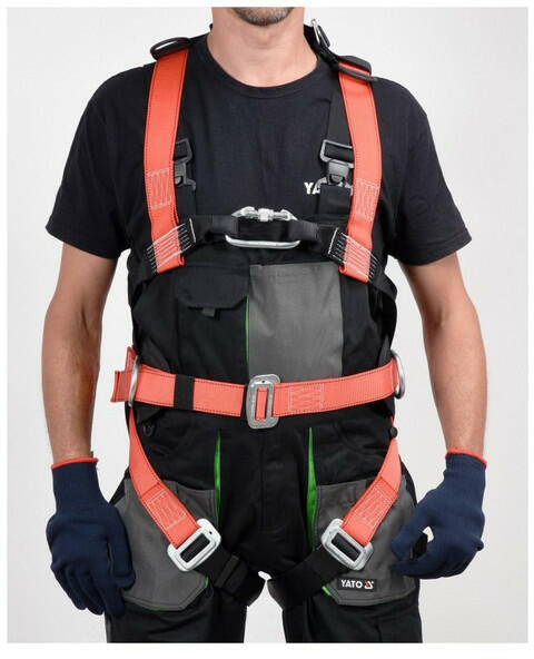 YT-74220 este un ham de siguranță echipat cu o centură, parte a unui sistem conceput pentru a proteja persoanele de căderi de la înălțime. Centura trebuie să se potrivească strâns în jurul trunchiului, taliei și coapselor, astfel încât, împreună cu un punct de fixare dedicat, să poată distribui în mod uniform forțele care acționează asupra corpului în timpul unei căderi. mărime universalădouă puncte de fixarepunct de fixare dorsal în formă de D la spate pentru atașarea dispozitivelor absorbante de șocpunct de fixare frontal pentru operațiuni de salvare sub formă de două benzi de material textil și carabinierăcentură ajustabilă la pieptcentură ajustabilă la talie cu două căști în formă de D pentru fixarea centurii de susținerecenturi ajustabile la coapsepernă de talie ușoară, care absoarbe umezeala și permite respirațiacentură de material textil din poliester de 45 mm lățime, cu o rezistență la rupere mai mare de 27 KNcatarame pe centura de la piept pentru a desface centura după muncă sau pentru a o agăța pentru a se uscaCentura de siguranță YT-74220 a fost testată de un laborator acreditat de UE și îndeplinește cerințele EN 361:2002 și EN 358:1999. DESCRIERE VIZUALĂASPECTE DE SIGURANȚĂ ȘI LEGALEMunca la înălțime se referă la lucrul efectuat la o înălțime mai mare de 1 metru deasupra nivelului solului/suprafeței, care nu este înconjurată pe toate părțile de un zid solid sau de o structură de protecție de până la 1,5 metri. Dacă nu este posibil să se aplice măsuri de protecție colective în aceste condiții, angajatorul care comandă lucrul trebuie să furnizeze, printre altele, echipamente individuale de protecție. Toate echipamentele de protecție împotriva căderii trebuie să respecte anumite standarde de siguranță, pe care producătorul le poate confirma numai printr-un laborator de testare acreditat de UE. Confirmarea conformității cu standardele garantează în primul rând siguranța utilizatorului, dar protejează și angajatul și angajatorul de consecințele financiare ale sancțiunilor impuse de instituțiile de control al muncii. Fiecare piesă din echipamentele de protecție împotriva căderii YATO este însoțită de teste actuale care confirmă conformitatea cu standardele de siguranță și, dacă sunt utilizate în conformitate cu instrucțiunile, garantează o funcționare fiabilă timp de 5 ani. DURATA DE UTILIZAREPerioada de utilizare a centurii este de cinci ani și se calculează de la prima utilizare.